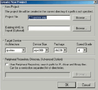 Создание нового проекта в среде управляющей оболочки Xilinx Platform Studio